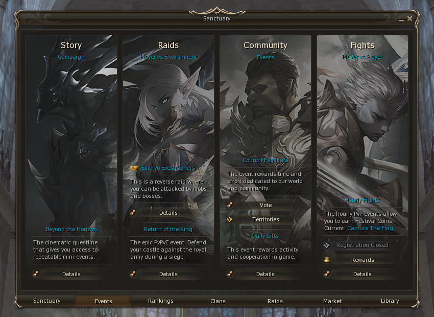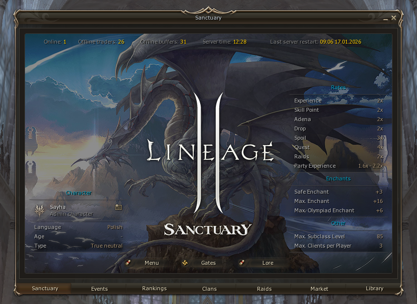 Cześć! Dziś na nasz serwer trafiła kolejna duża porcja usprawnień. Zobaczcie co dla was przygotowaliśmy! Przez lata rozwoju naszego serwera stworzyliśmy wiele unikalnych, niespotykanych nigdzie indziej elementów rozgrywki. Teraz zebraliśmy je wszystkie, podzieliliśmy na cztery kategorie, uporządkowaliśmy i stworzyliśmy zestawienie wszystkich wydarzeń, które znajdziecie na drugiej zakładce Community Board. Mamy nadzieje, że dzięki temu łatwiej wam będzie poruszać się po naszej bogatej ofercie nowych aktywności w Lineage II.